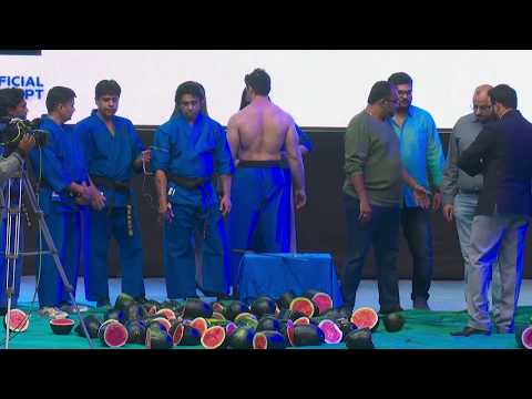Vispi Kasad and Vispy Kharadi - Watermelon Chopping Act (Guinness World Records) - Vispy Kapadia - This video showcases Renshi Vispi Kasad cutting watermelons on Sensei Vispy Kharadi's stomach in an attempt to achieve a Guinness World Records i.e ...